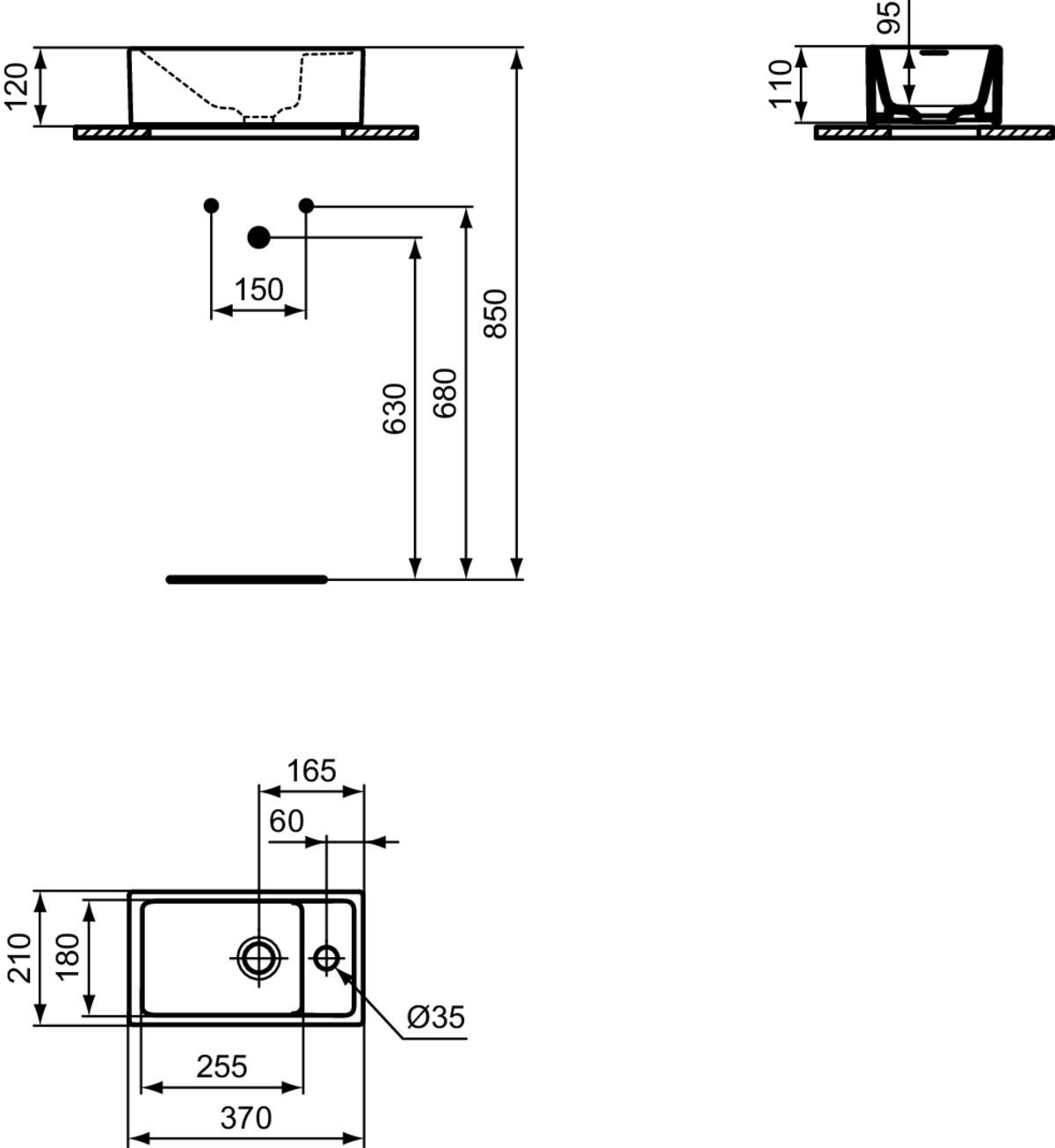 fontein opbouw/vessel+kg 37x21 z.ov. bxd Ideal Standard