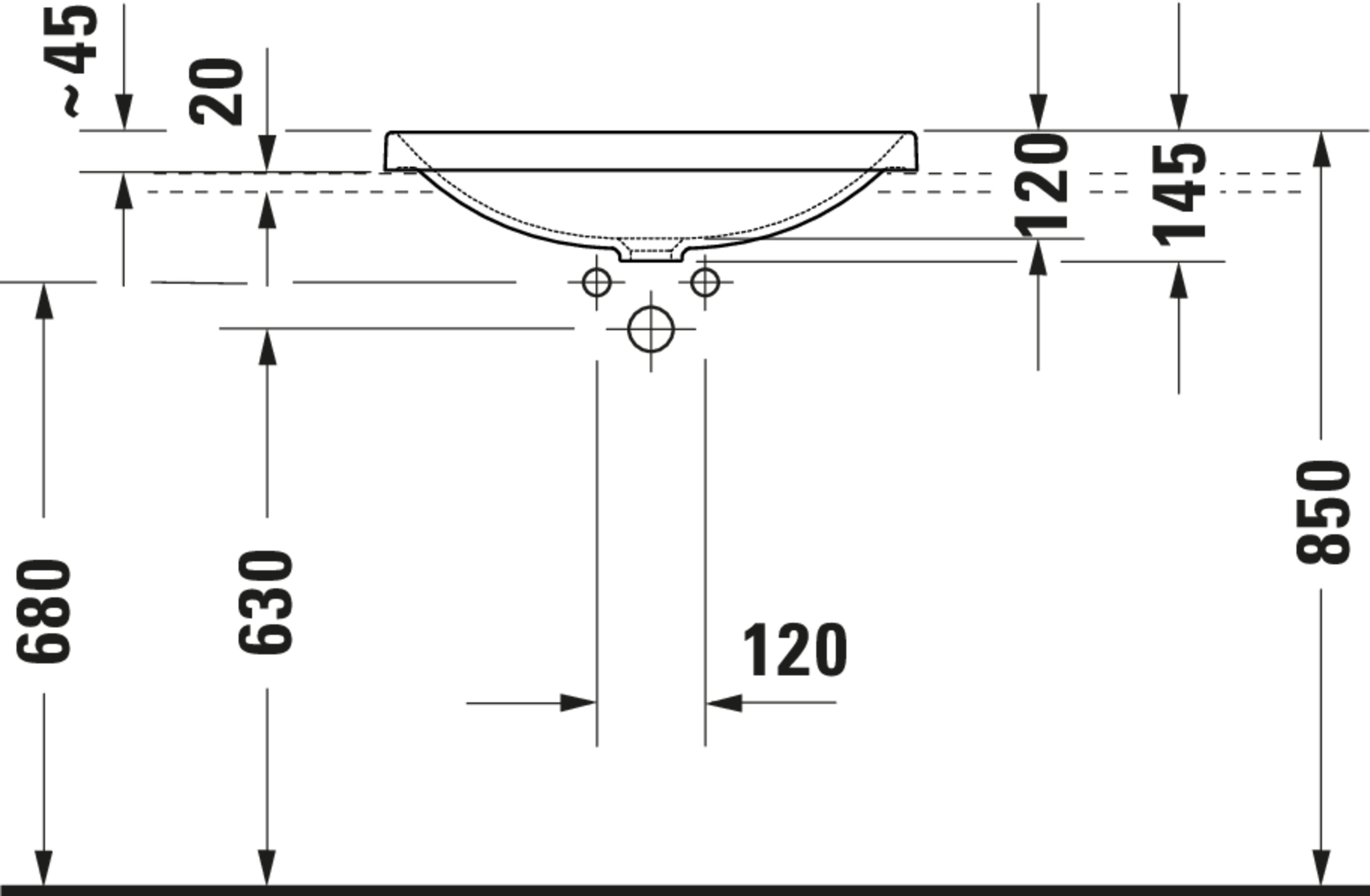 D-NEO #035860 inbouwwastafel 600mm wit zonder kraangat geslepen onderzijde Duravit
