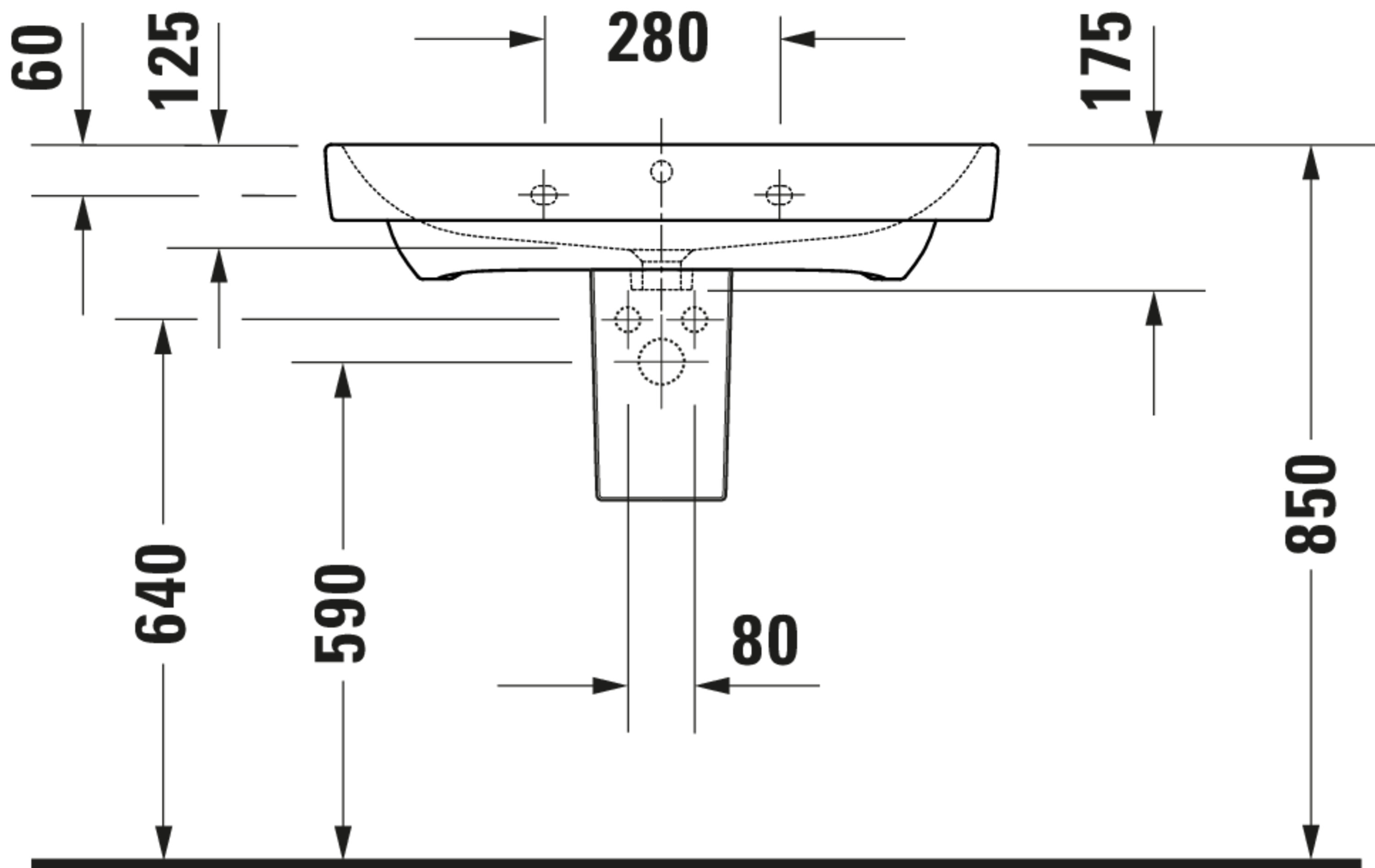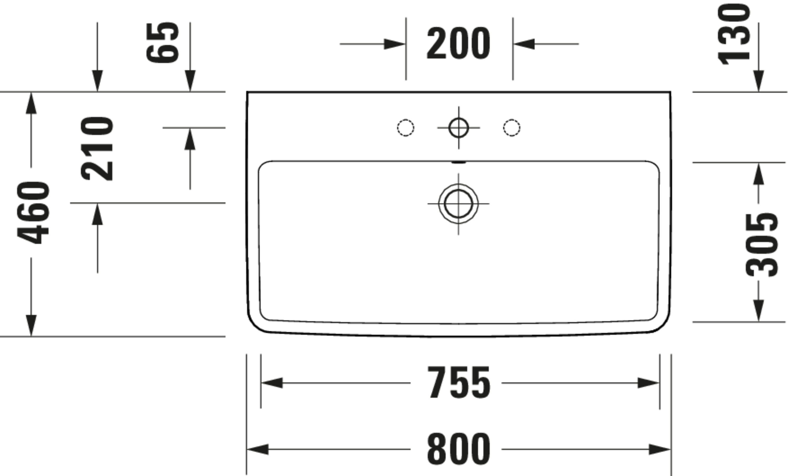 DURAVIT NO.1 #237580 wastafel 800mm wit met kraangat met overloop Duravit