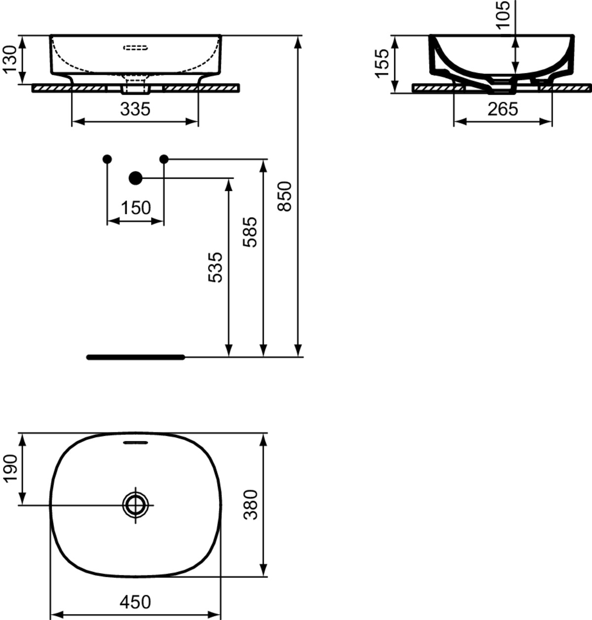 LINDA-X Opb.wast Ovaal 450X380X155mm z. kr.gat overl Silk WH Ideal Standard