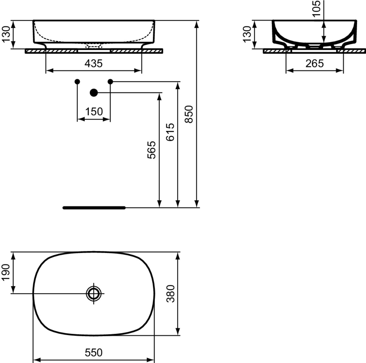LINDA-X Opb.wast Ov 550X380X155mm z.kr.g. z. overl. Silk WH Ideal Standard