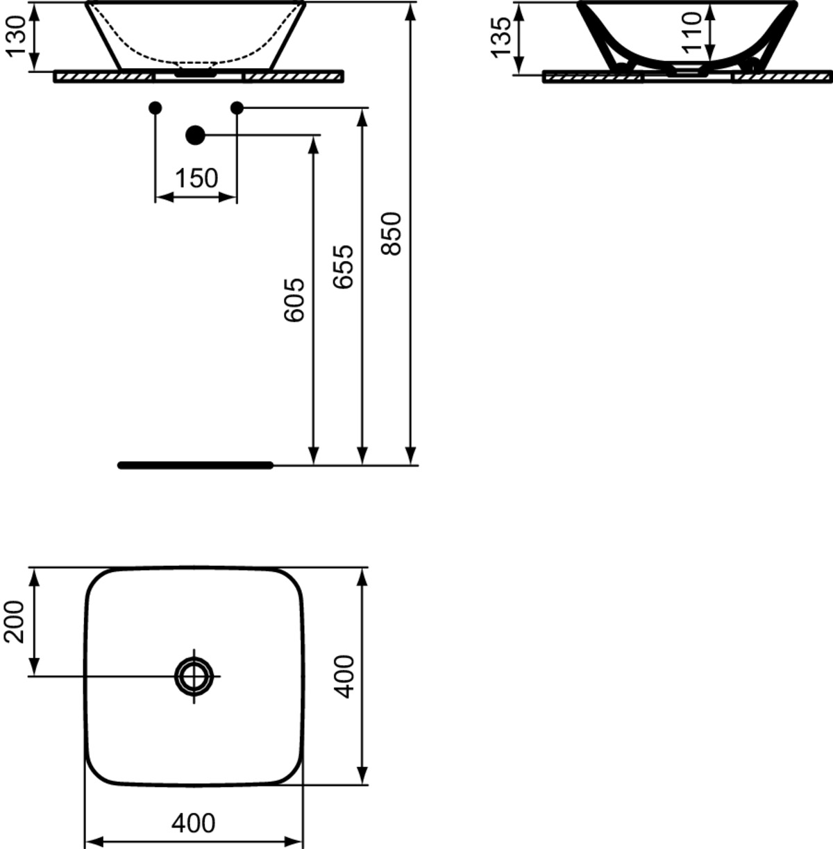 Connect Air Opb. Wastafel 40x40cm z. kraangat z. Overl. Ideal Standard