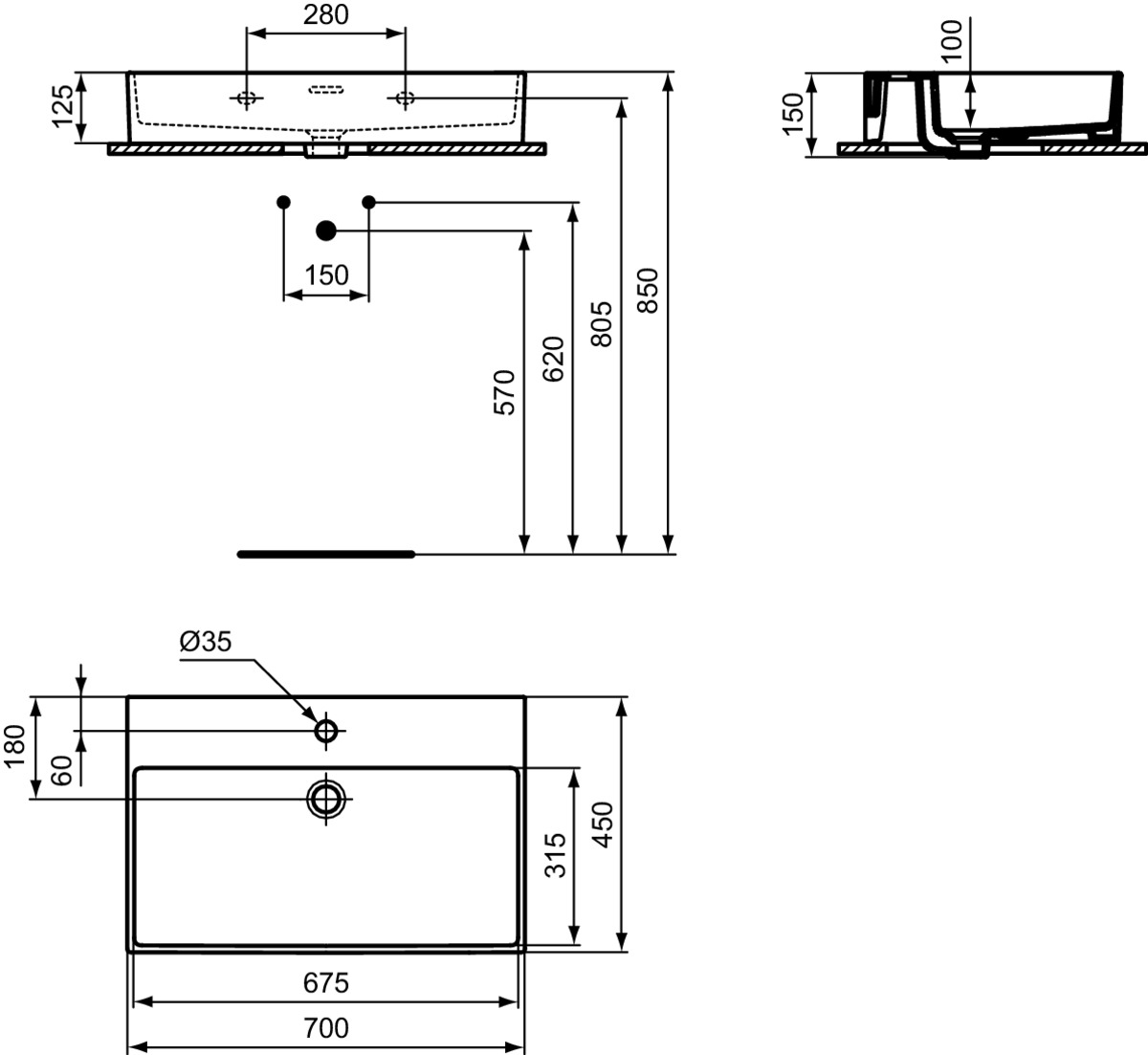 EXTRA wastafel 70cm met kraangat met overloop wit ideal plus Ideal Standard