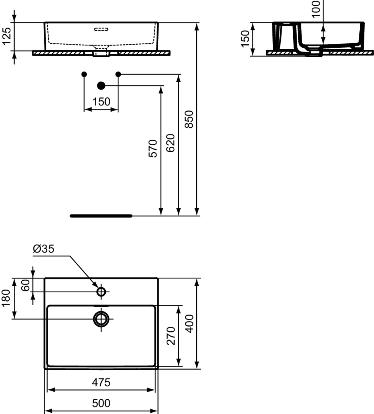 EXTRA opbouwwastafel 50x40cm kraangat overl. wit ideal plus Ideal Standard