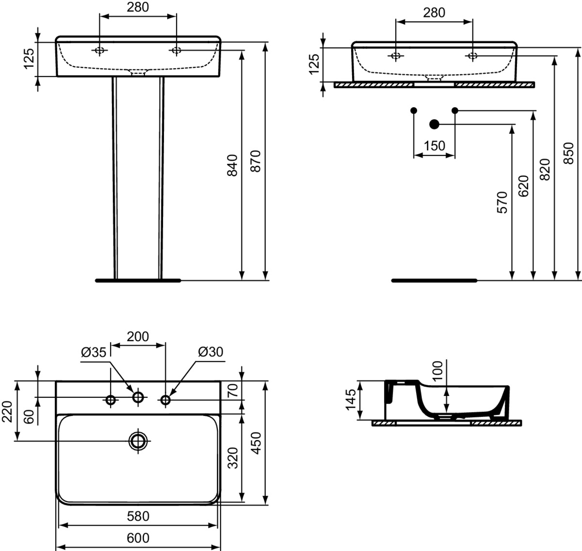 CONCA BASIN 60 3TH NOF GRINDED WHT IP Ideal Standard