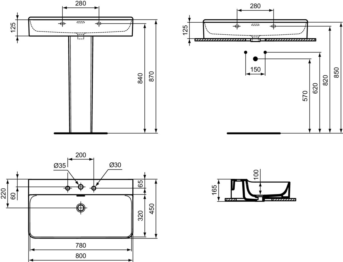 CONCA BASIN 80 3TH OF GRINDED WHT IP Ideal Standard