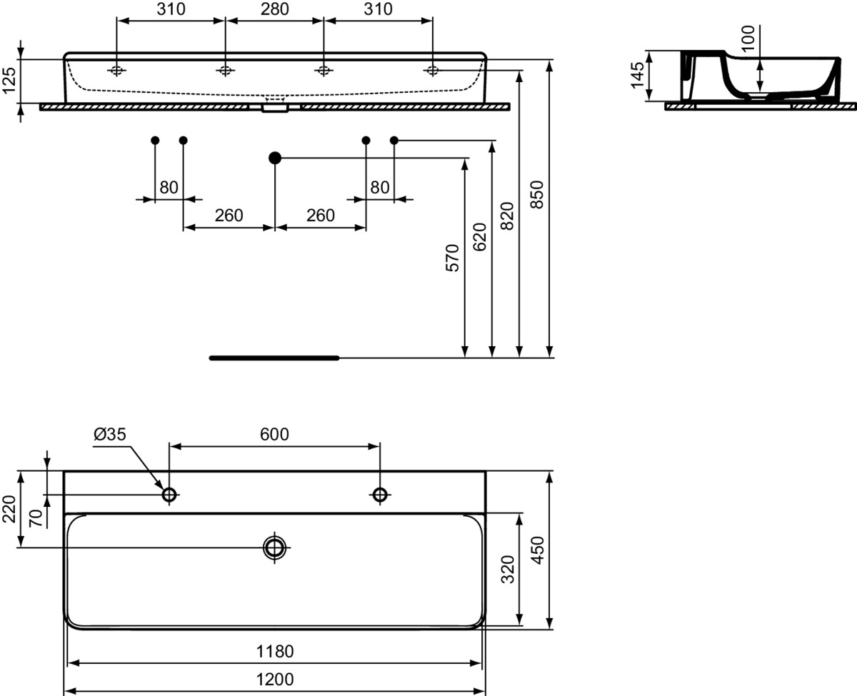 CONCA BASIN 120 2TH NOF GRINDED WHT IP Ideal Standard