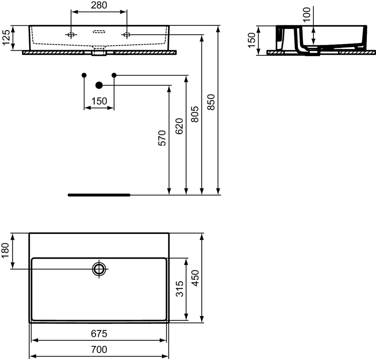 - Aantal kraangaten per wasbak: 0