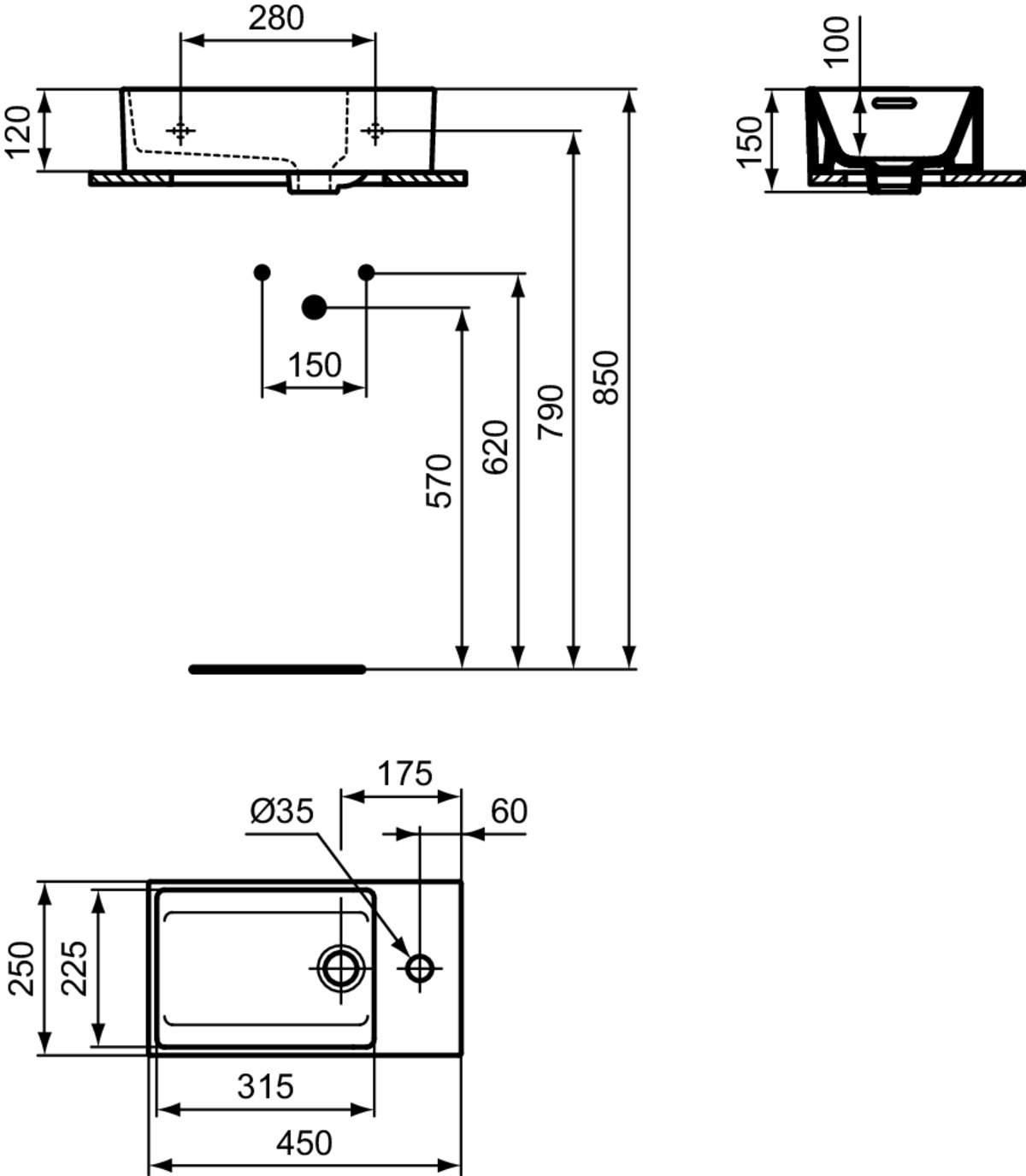 EXTRA fontein 45x25cm rechts kraangat overl. gesl. wit Ideal Plus Ideal Standard