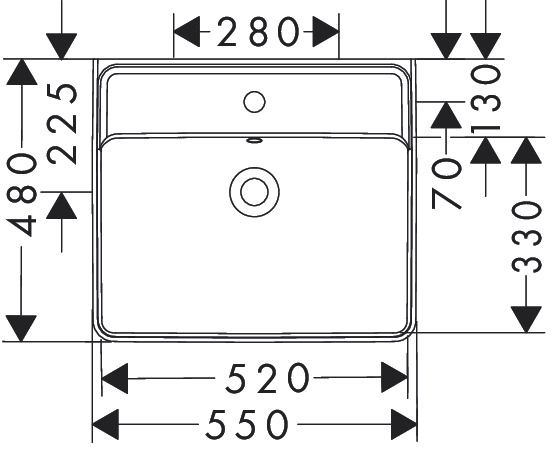 Geslepen opzetwastafel 550x480mm met kraangat met overloop wit Xanuia Q hansgrohe