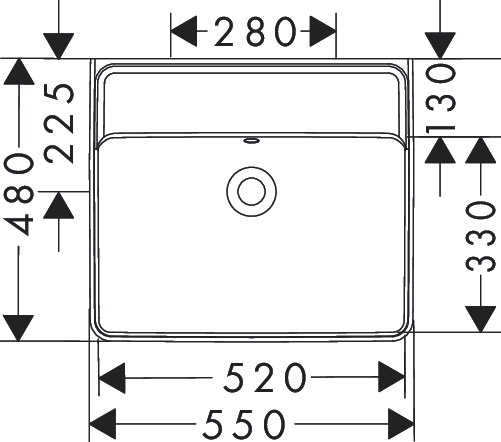 Geslepen opzetwastafel 550x480mm zonder kraangat met overloop wit Xanuia Q hansgrohe