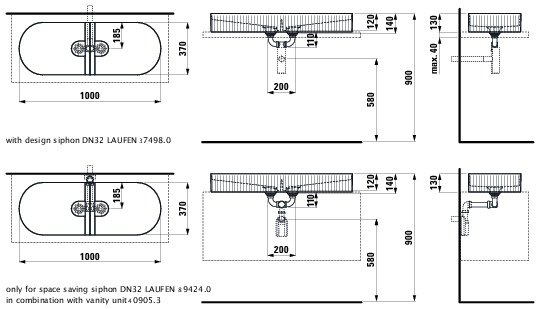 Dubbele wastafel met reliëf met keramische afdekking Wit LCC Laufen