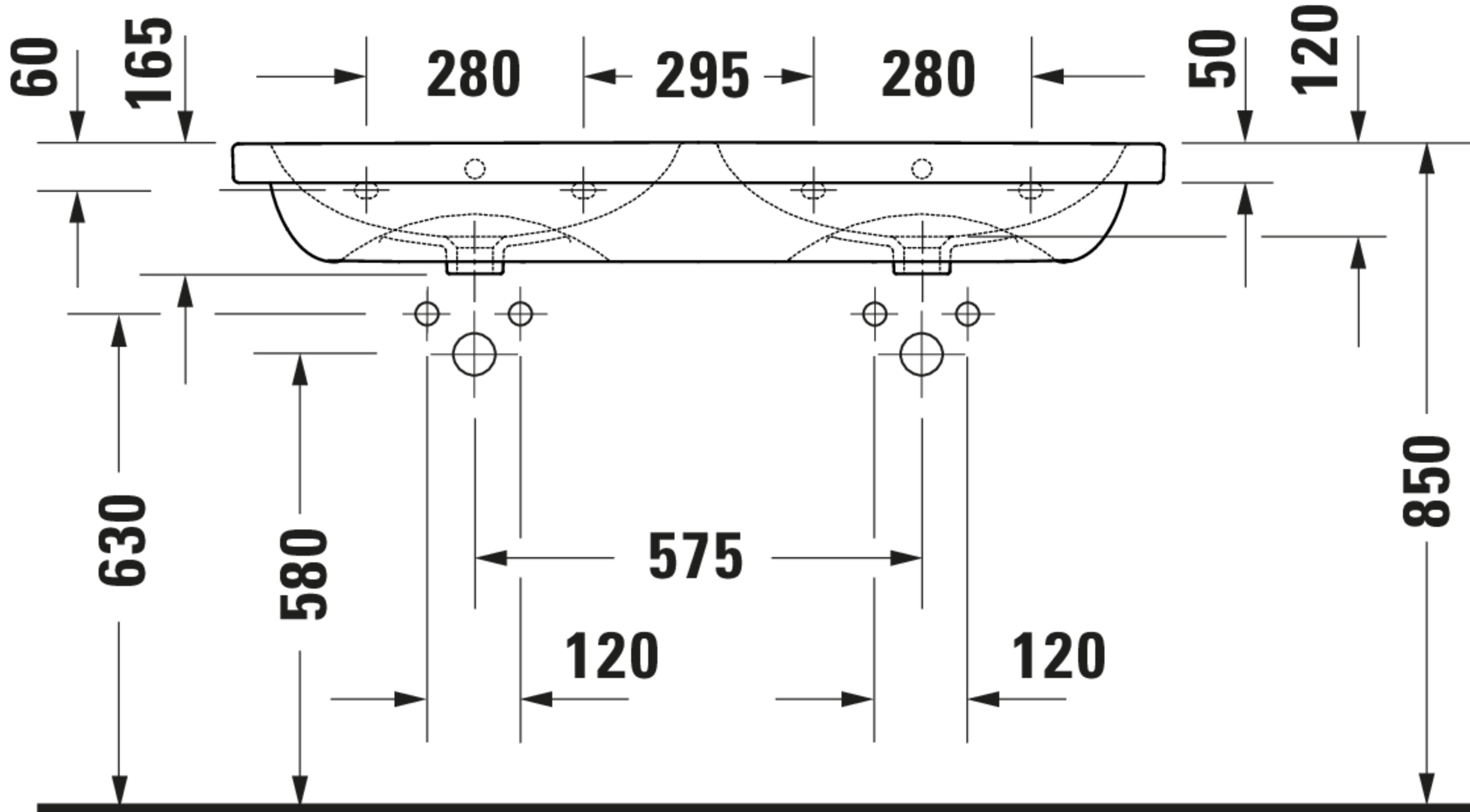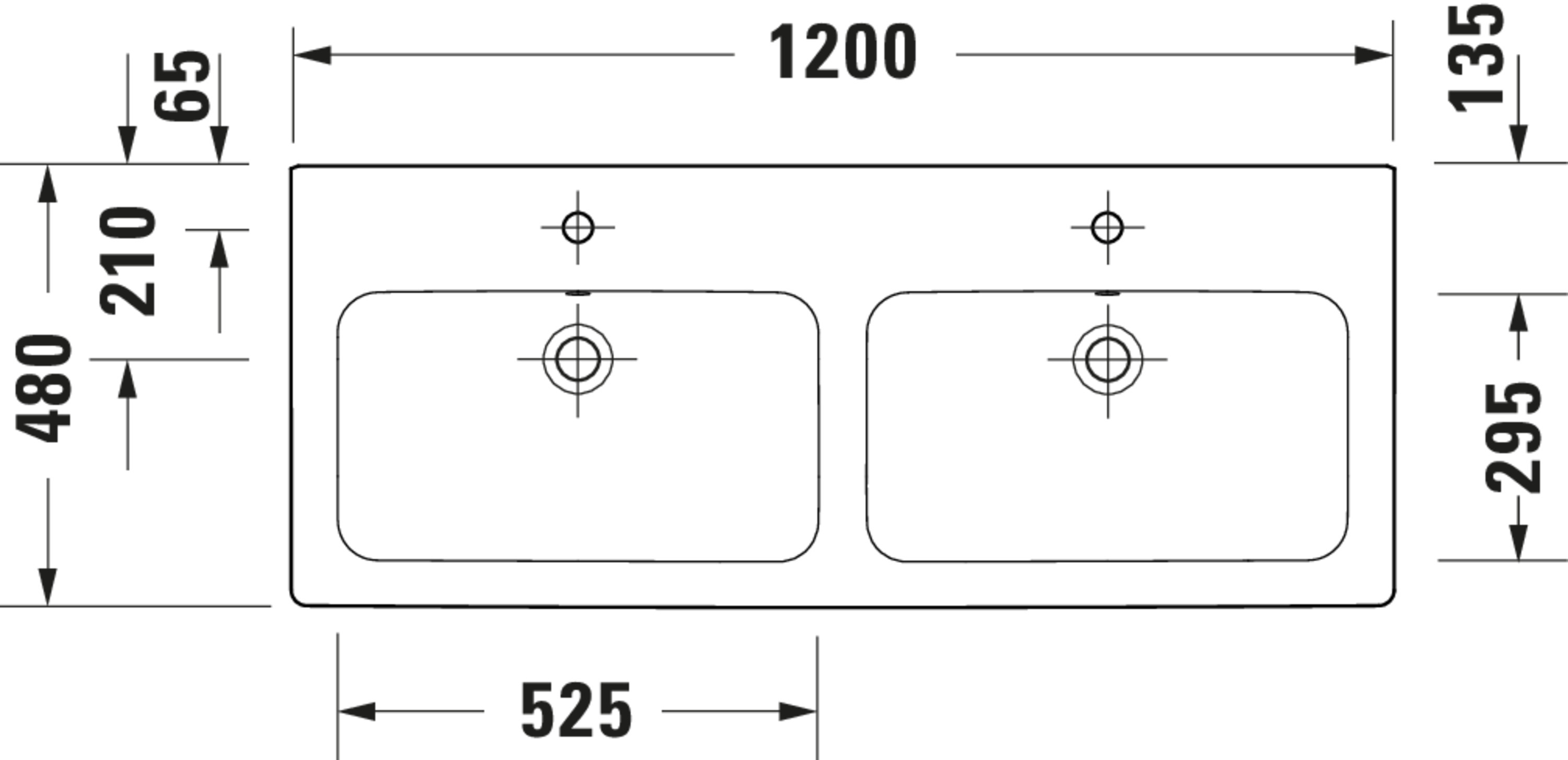 D-CODE #240012 Dubbele wastafel hoogglans 1200mm wit met kraangat met overloop Duravit