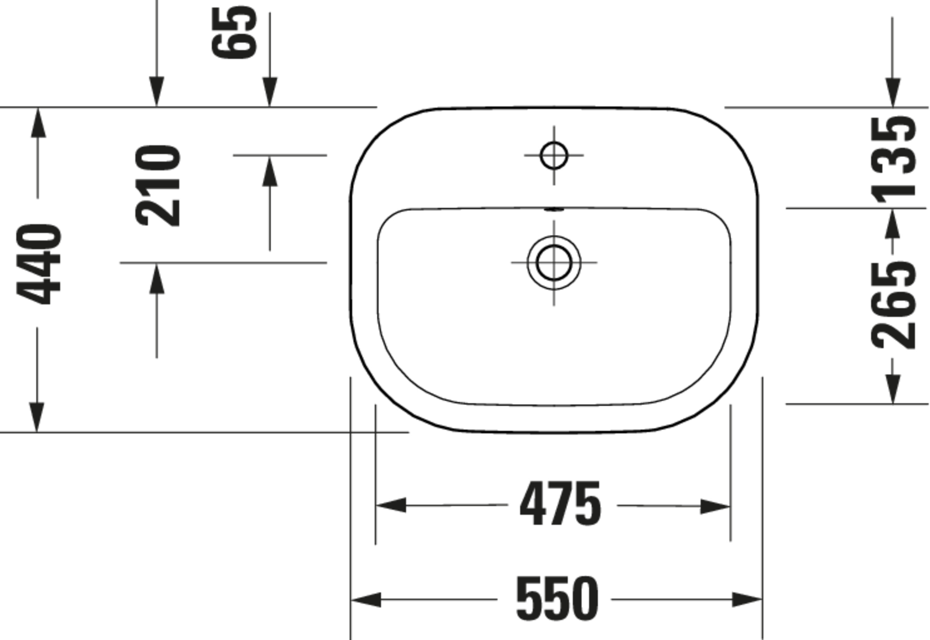 D-CODE #240255 Opzetwastafel hoogglans 550mm wit met kraangat met overloop Duravit