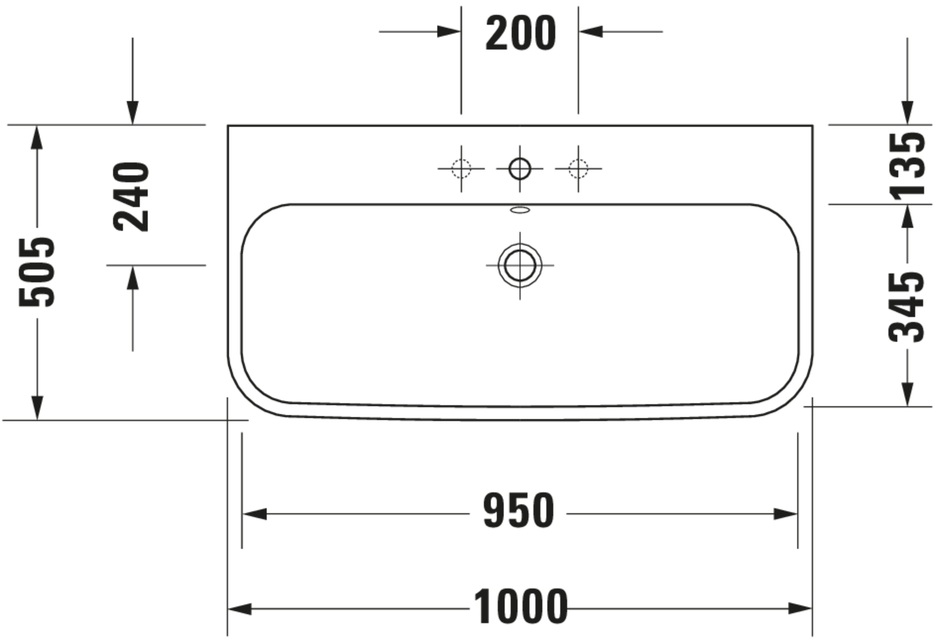HAPPY D.2 #231810 wastafel 1000mm wit met kraangat met overloop Duravit