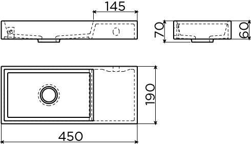 Fontein 450x190mm mat zwart RE zonder kraangat overloop/plug Clou