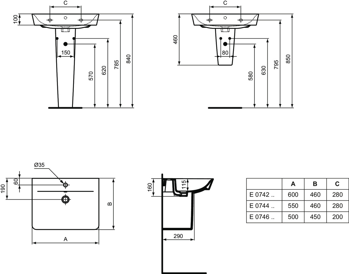 • Aantal kraangaten per wasbak: 1