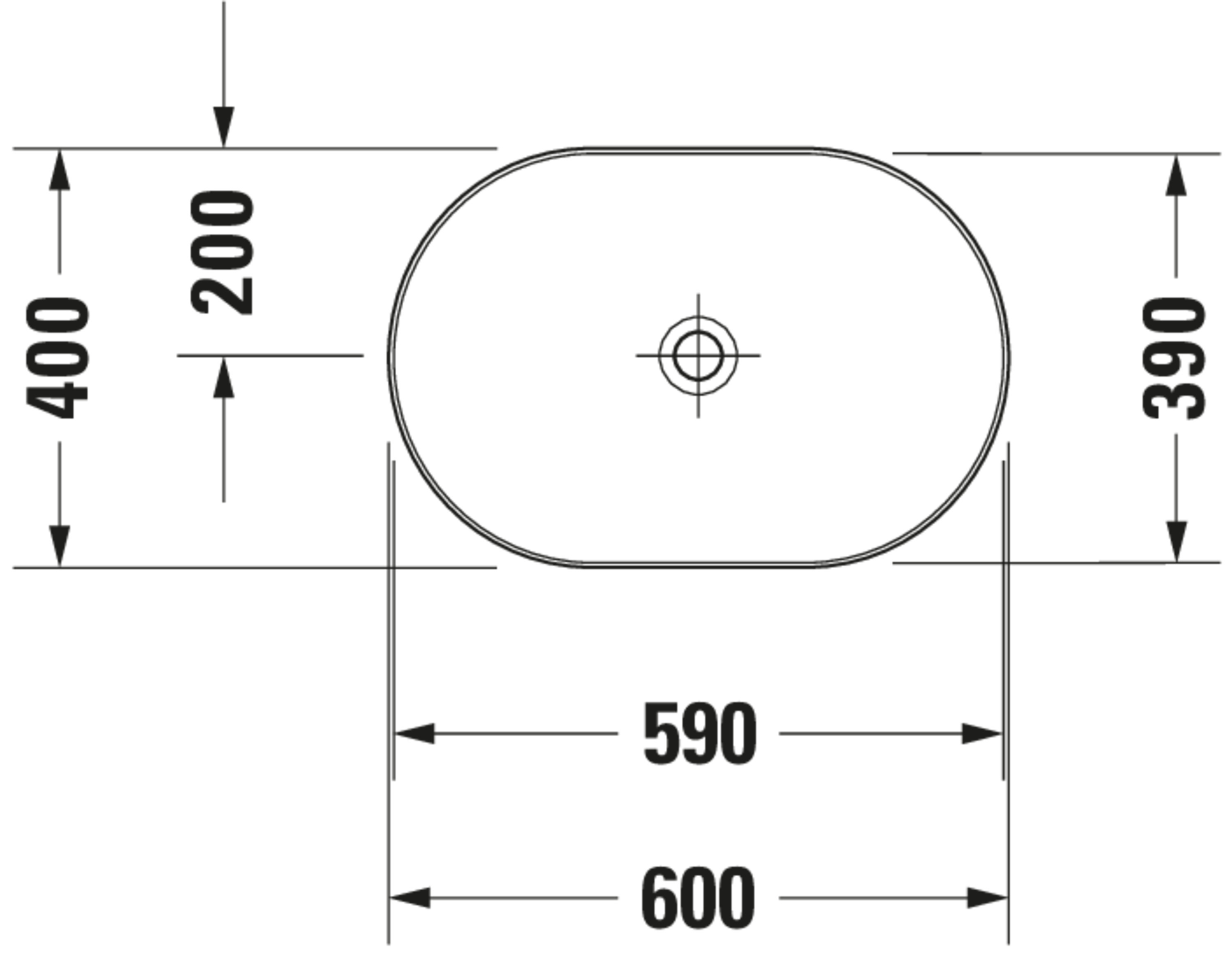 LUV #037960v opzetwastafel 600mm kleur buitenkant wit zijdemat (wit glans binnen) zonder kraangat geslepen onderzijde Duravit