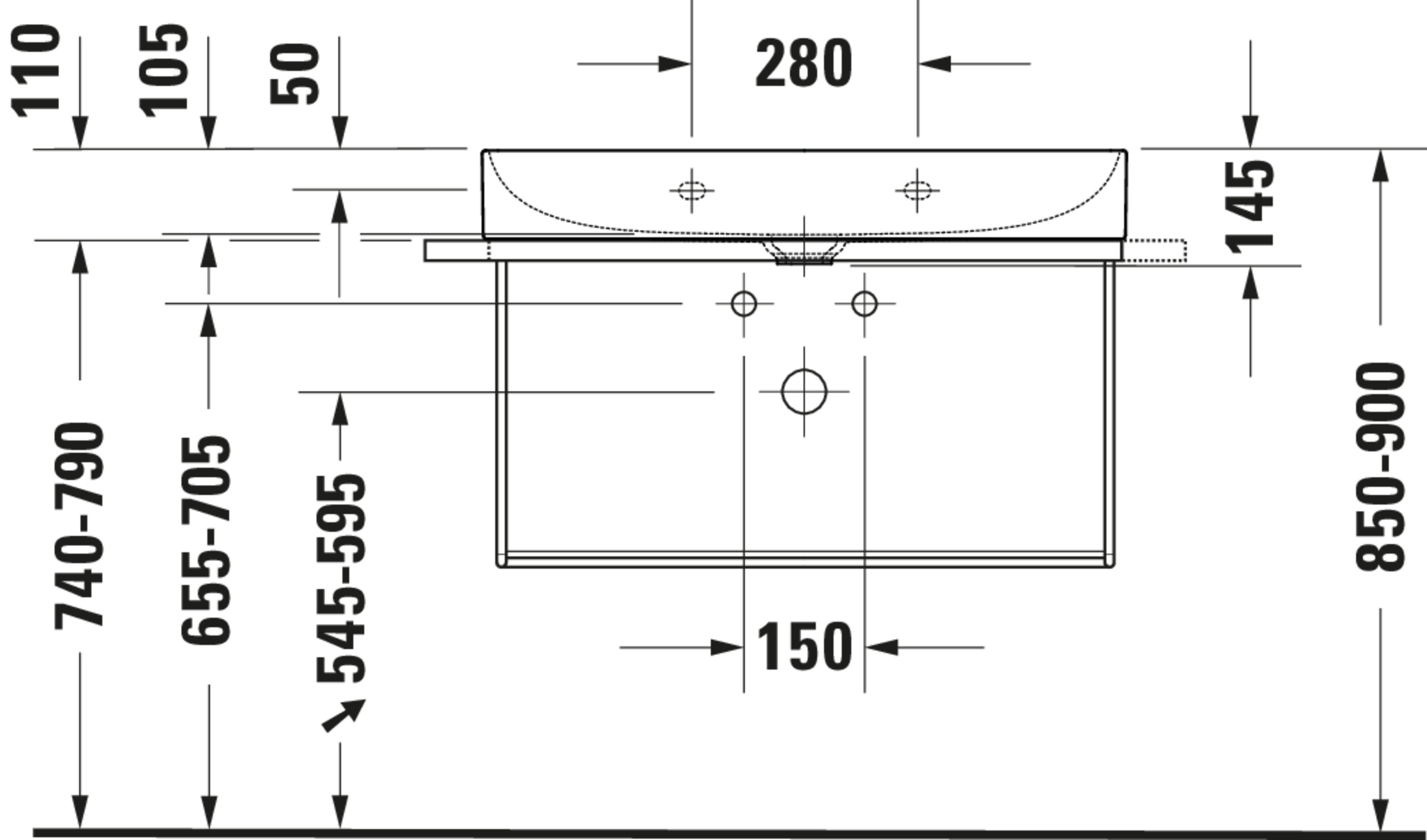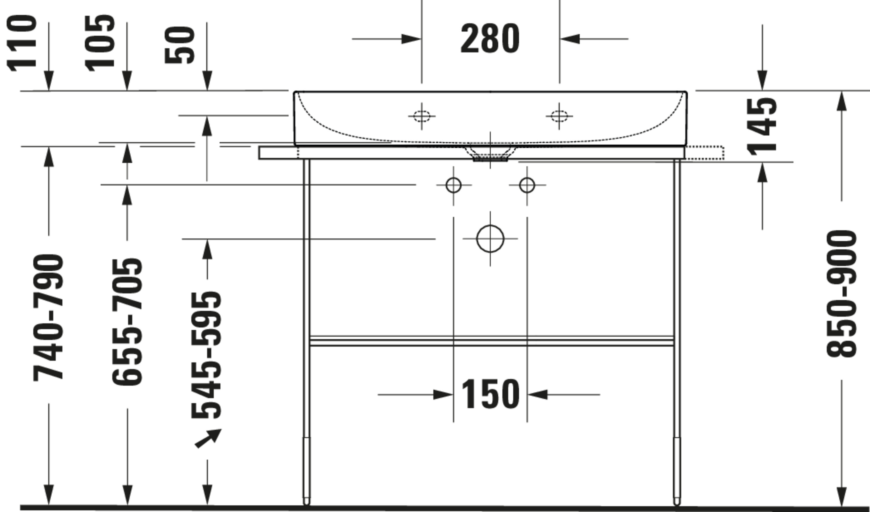 - Geschikt voor console lengte: 800 - 800 mm