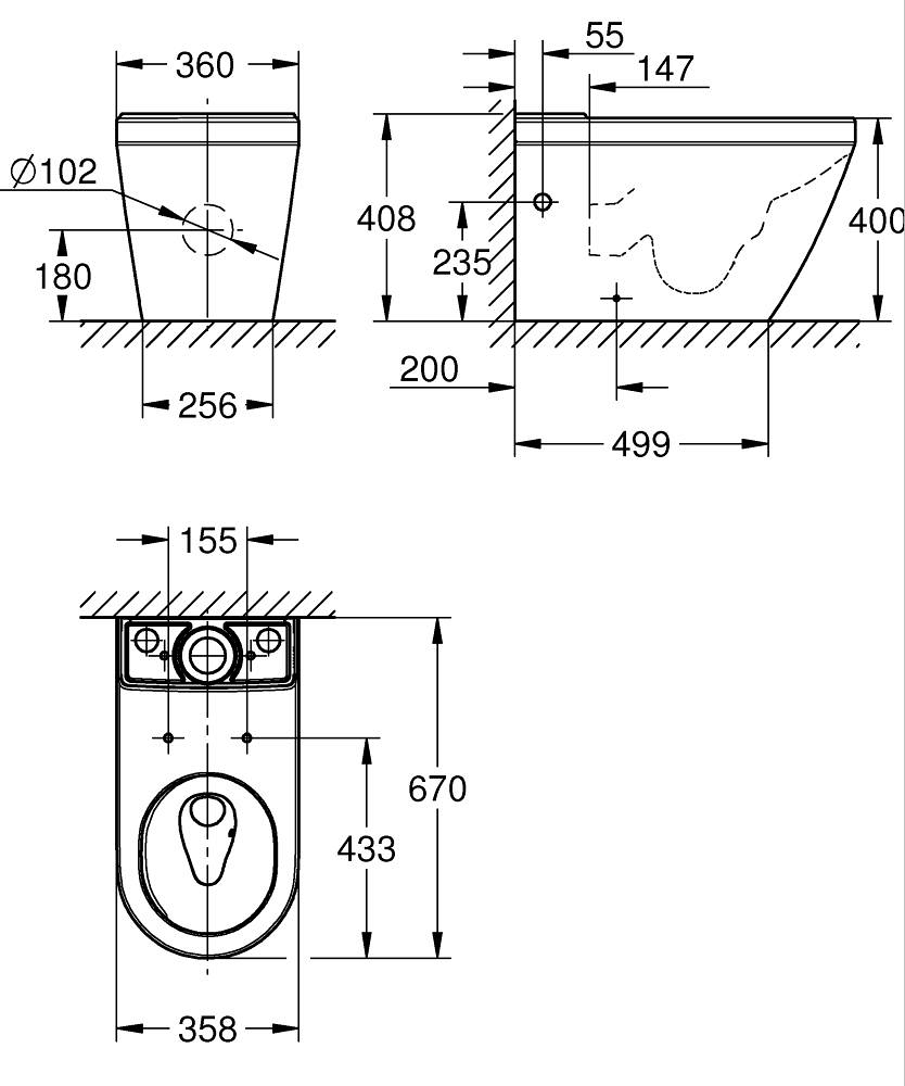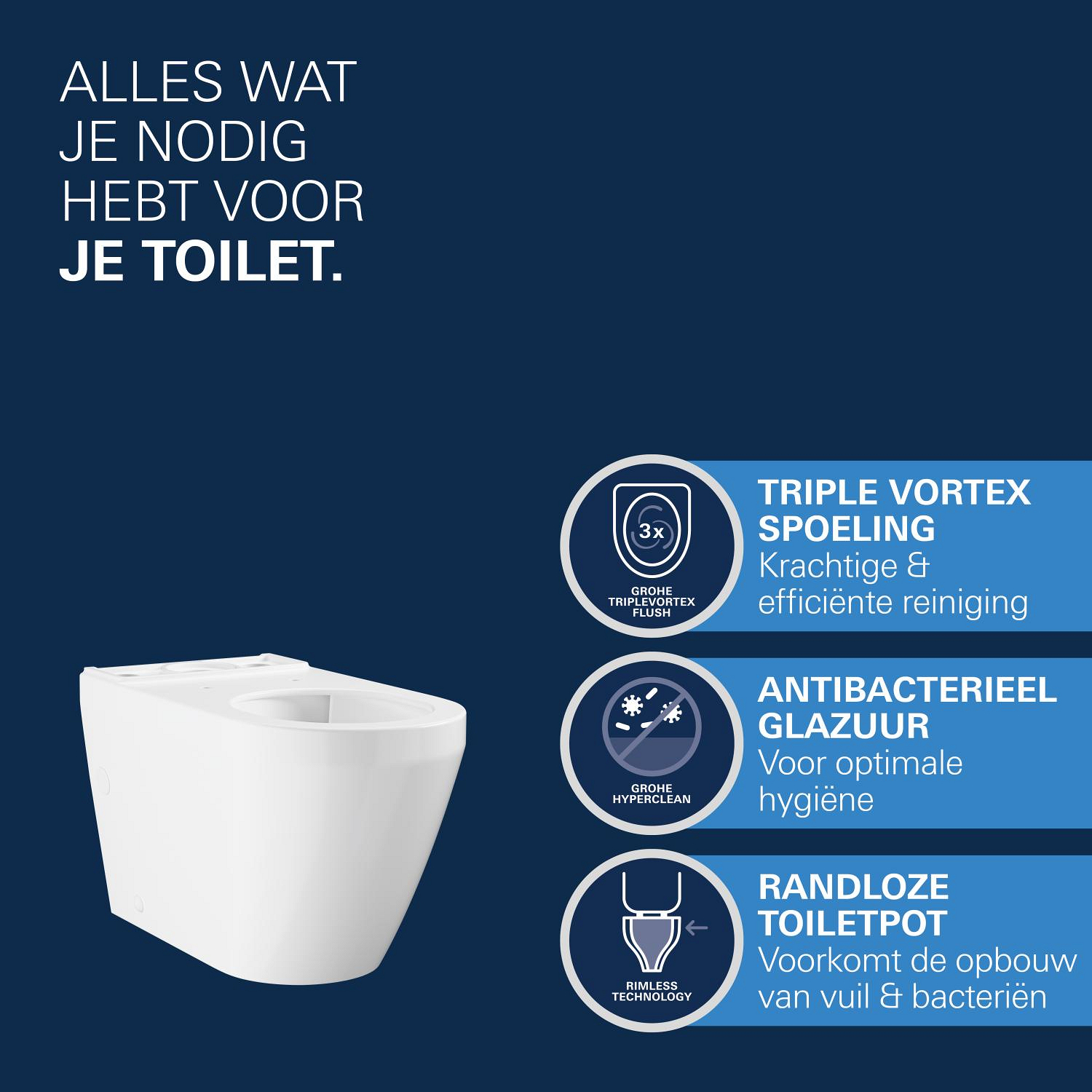 Euro Ceramic staand closet tbv duoblok randloos (excl. reservoir) Grohe
