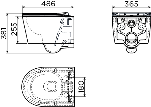 • Hartmaat bevestiging closetzitting: 180 mm