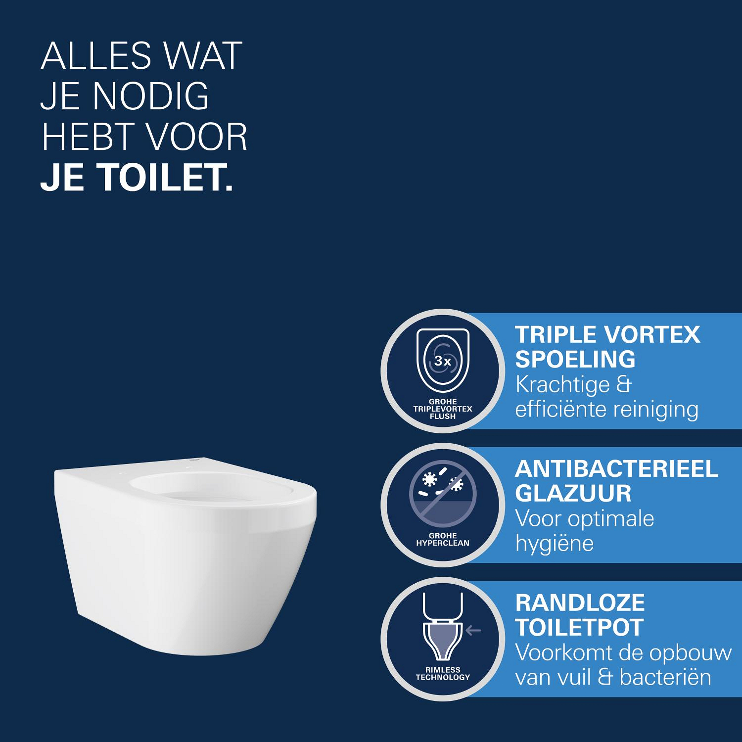 Euro Ceramic wandcloset 54cm diepspoel randloos (excl. zitting) Grohe