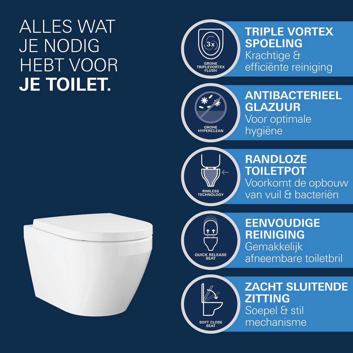 Euro Ceramic wandcloset combipack incl. zitting softclose Grohe