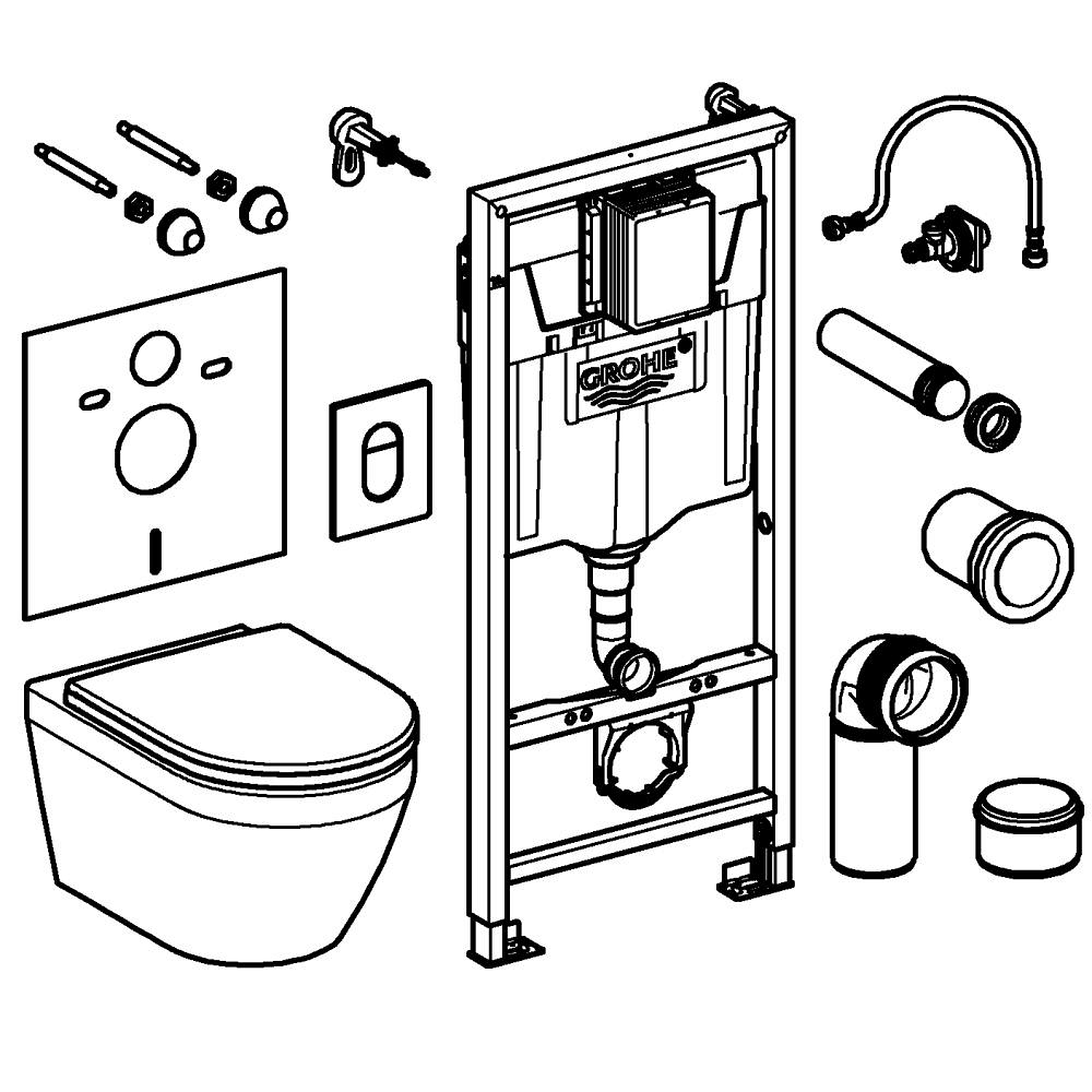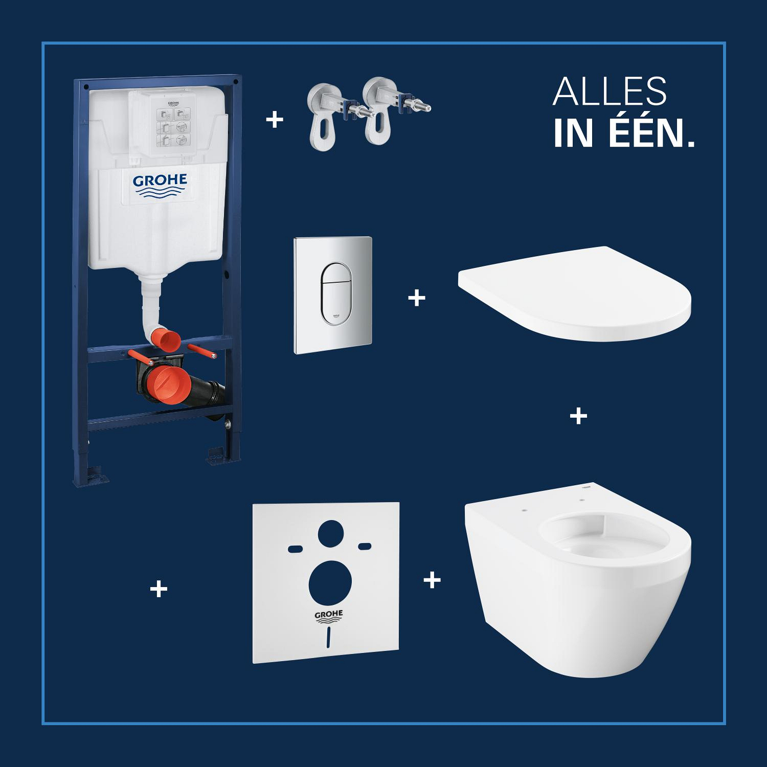 Wandcloset combipack Euro Arena 5-In-1 (2 Verpakkingen) incl. Rapid SL reservoir /bediening/ closetzitting Grohe