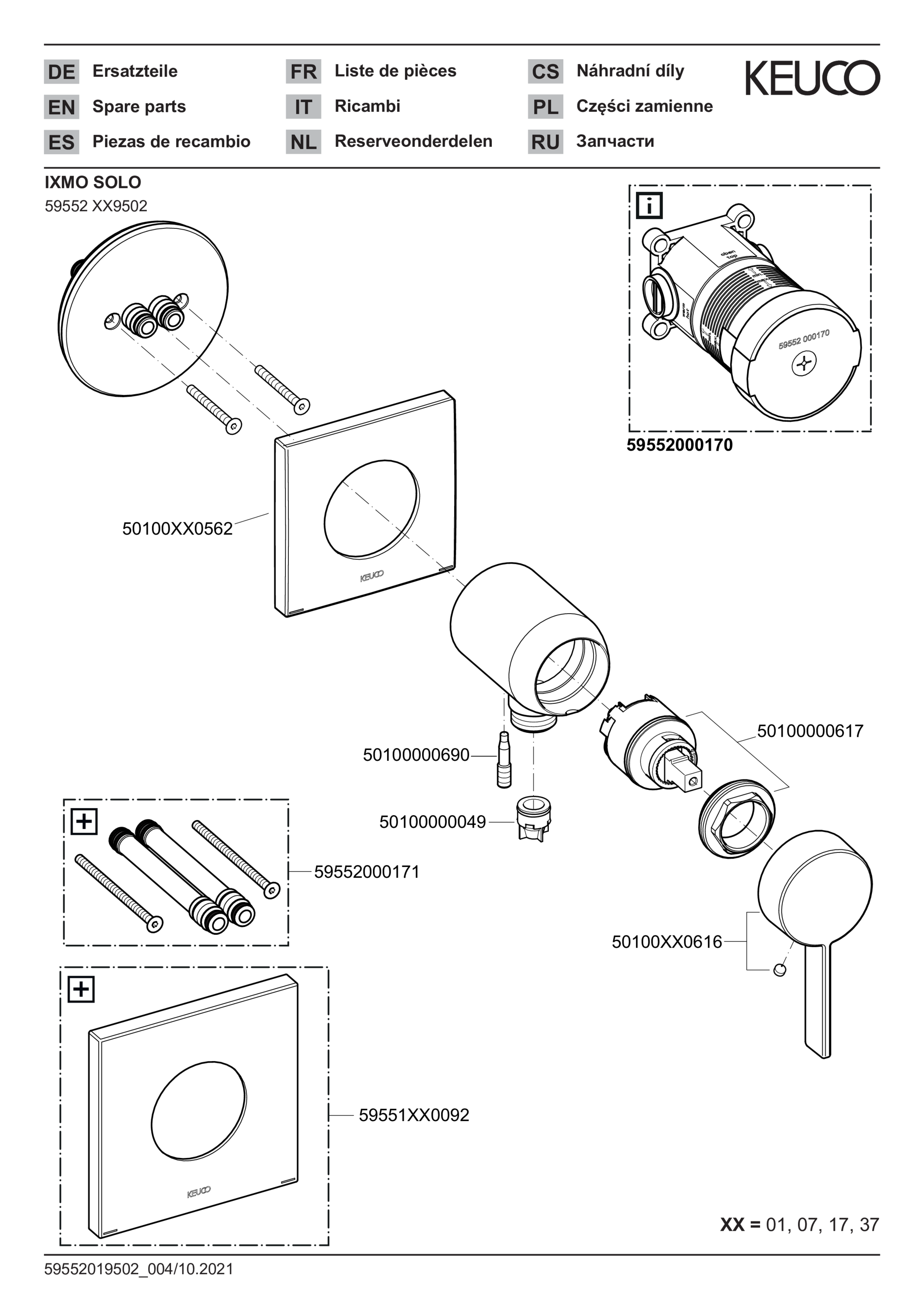 IXMO SOLO 1-hendel mengkraan l m. slangaansluit. 4-kant 59552019502 KEUCO