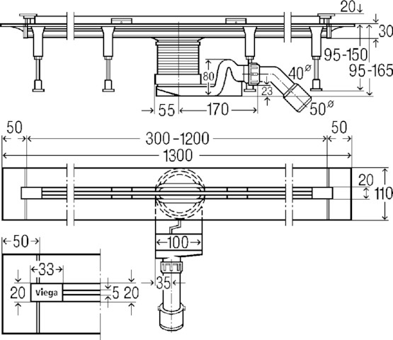 Advantix Vario douchegoot basiselement 300-1200mm zwart excl. rooster Viega