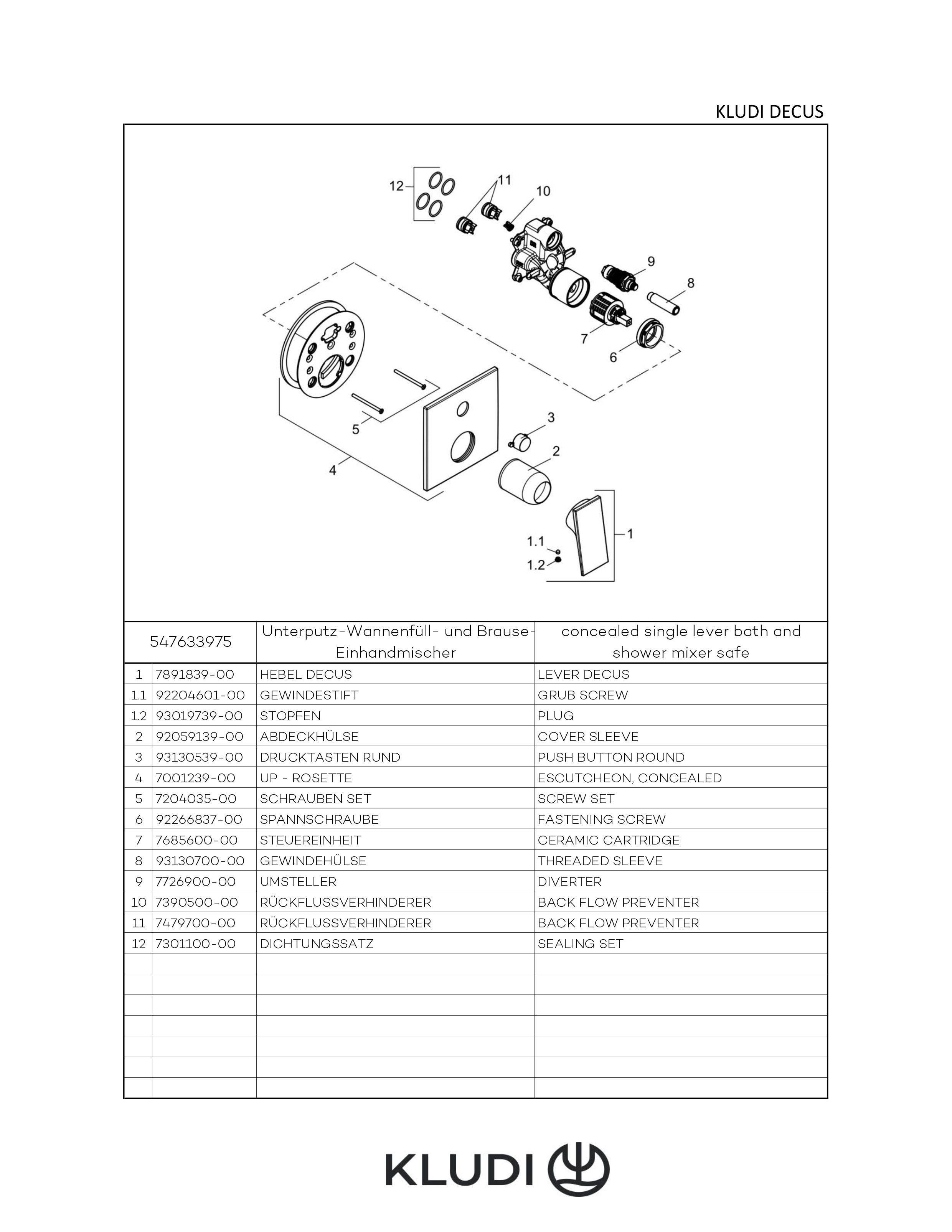 Decus Inb.Badmngkr. Afm.Set 88022 Mat.Zw Kludi