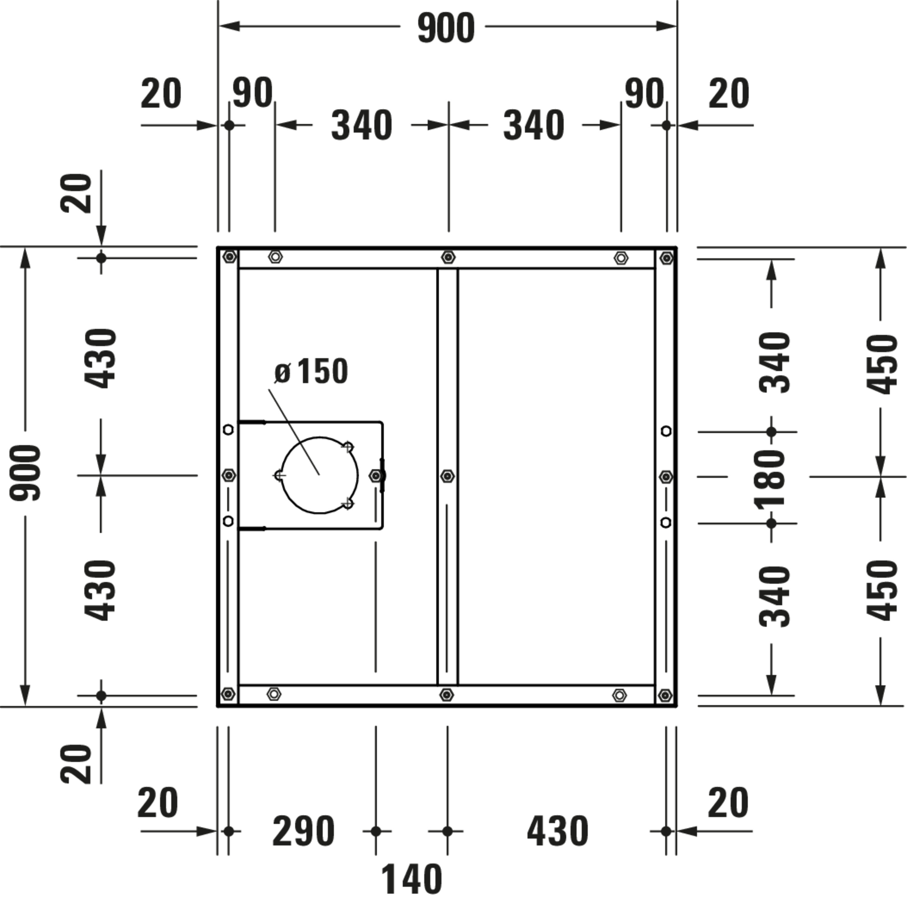 Potenstel, voor douchebak Tempano 900x900mm Duravit