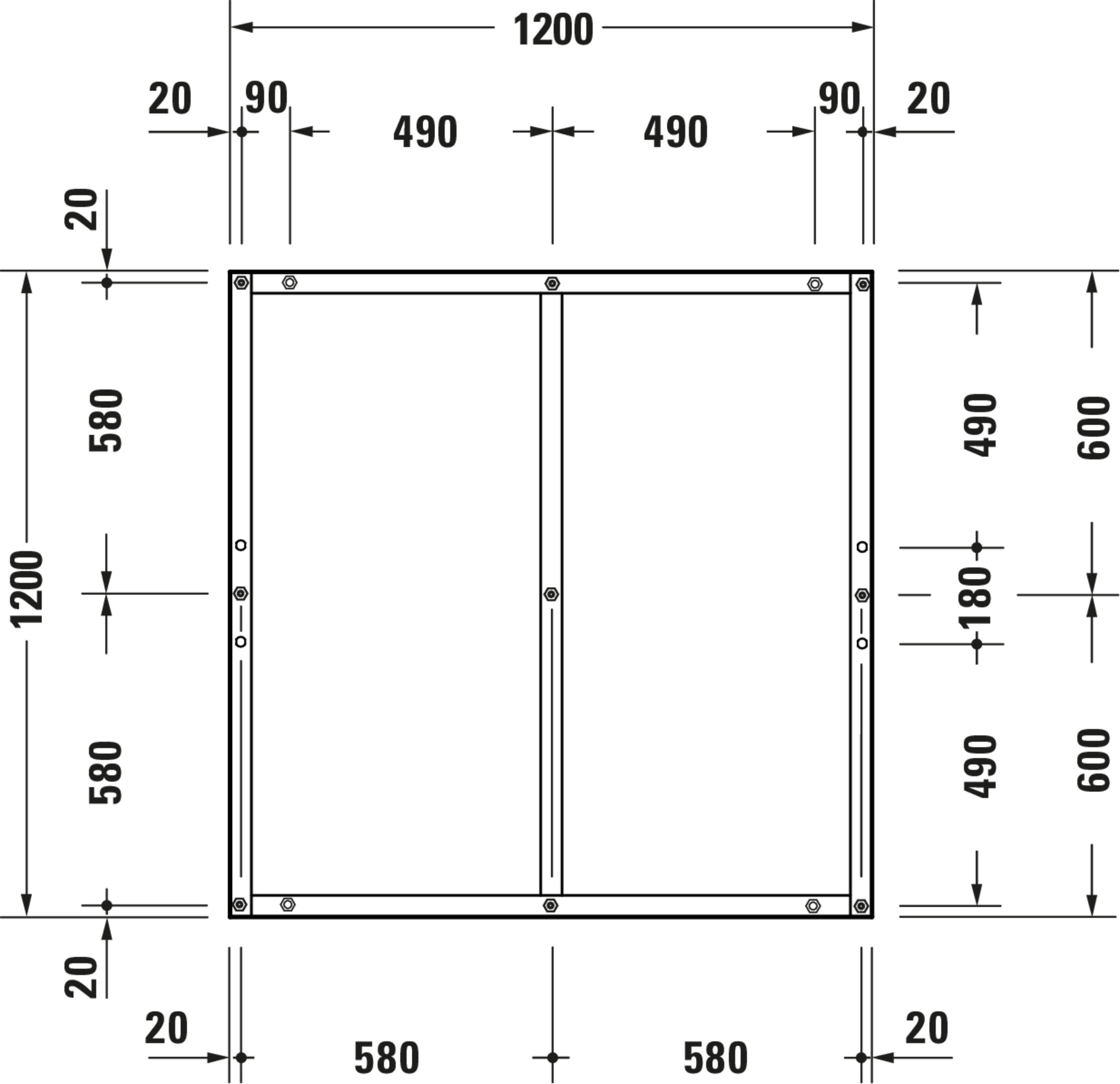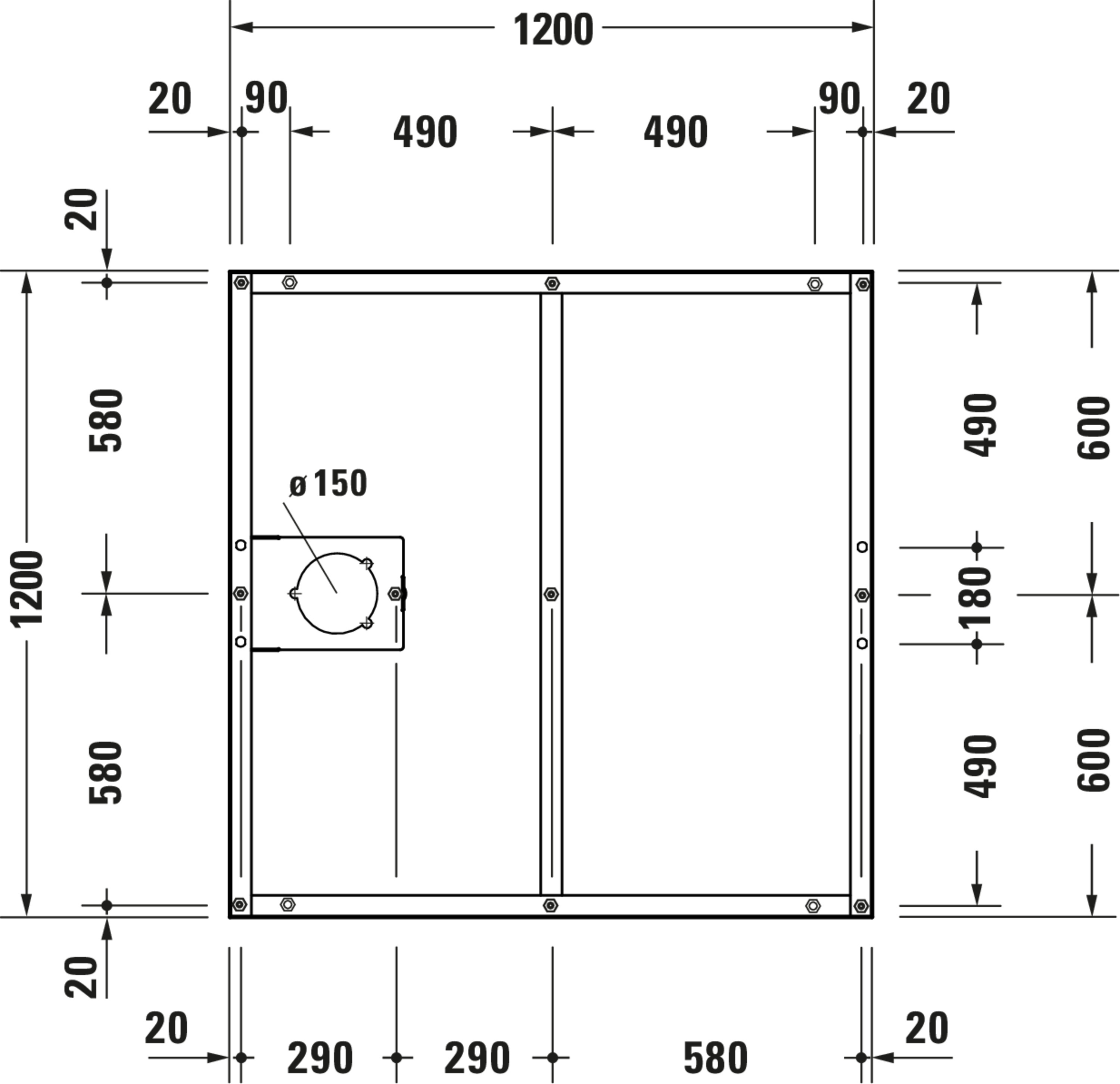 • Breedte: 1200 - 1200 mm