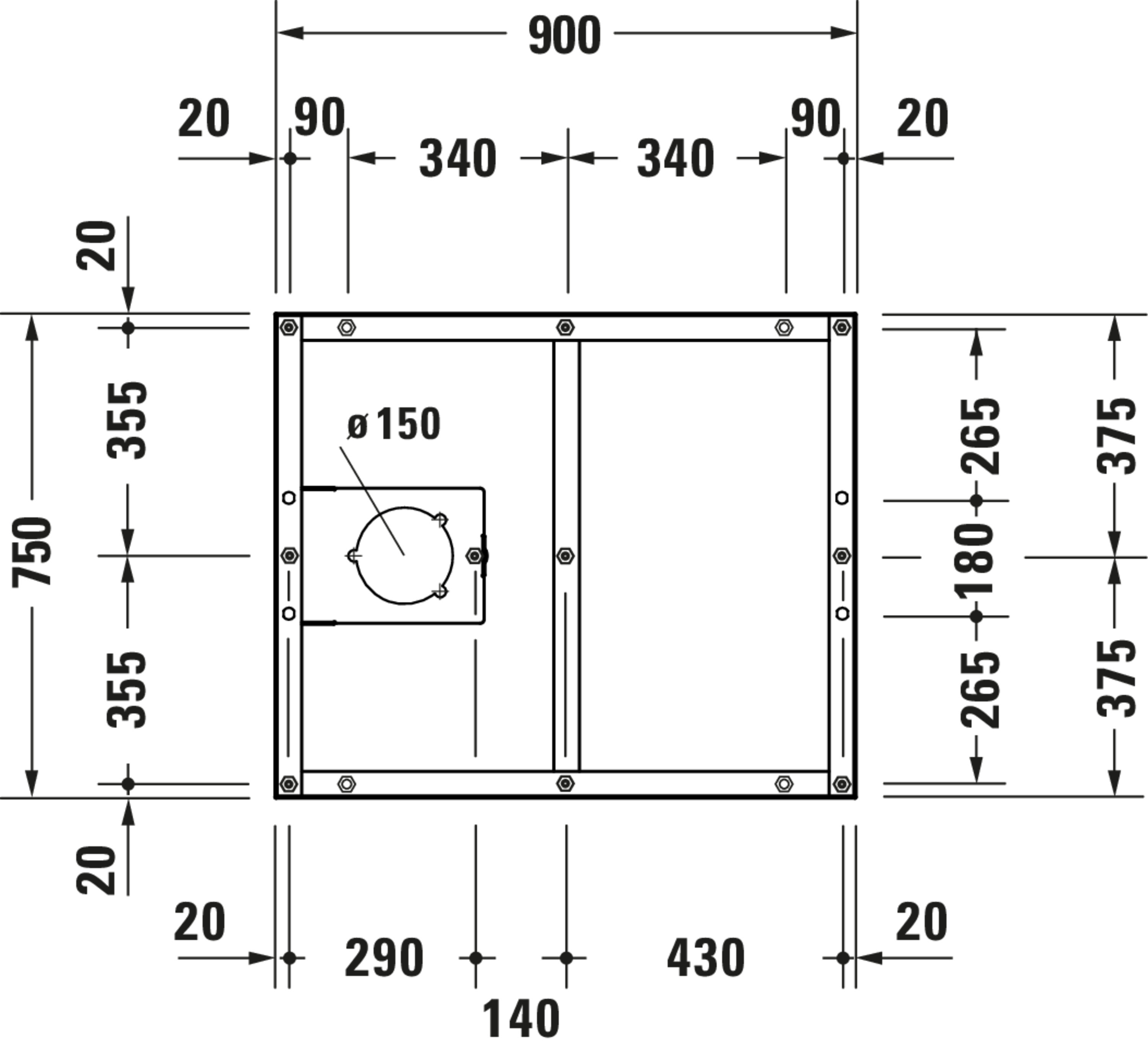 - Breedte: 750 - 750 mm