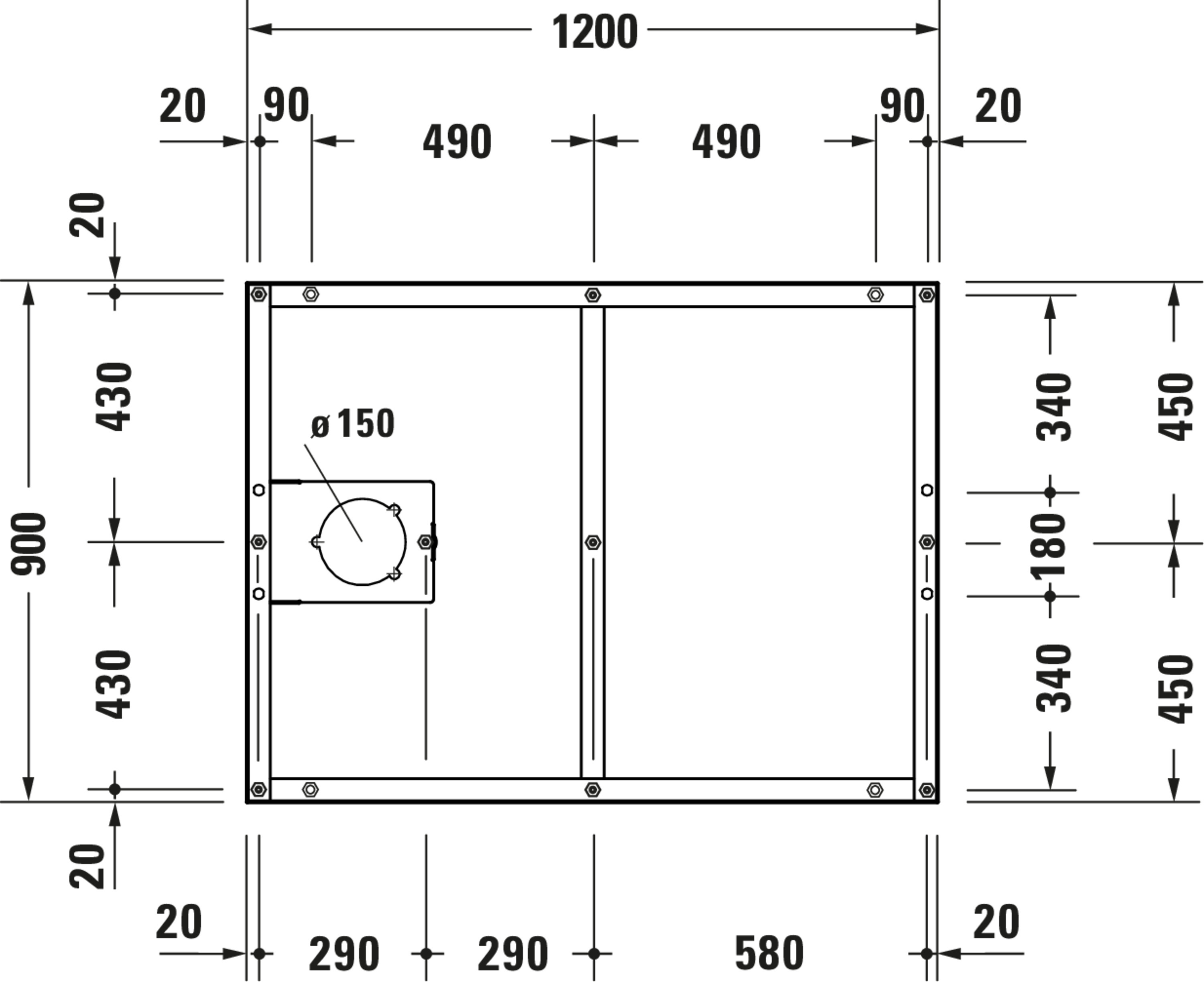 - Breedte: 900 - 900 mm