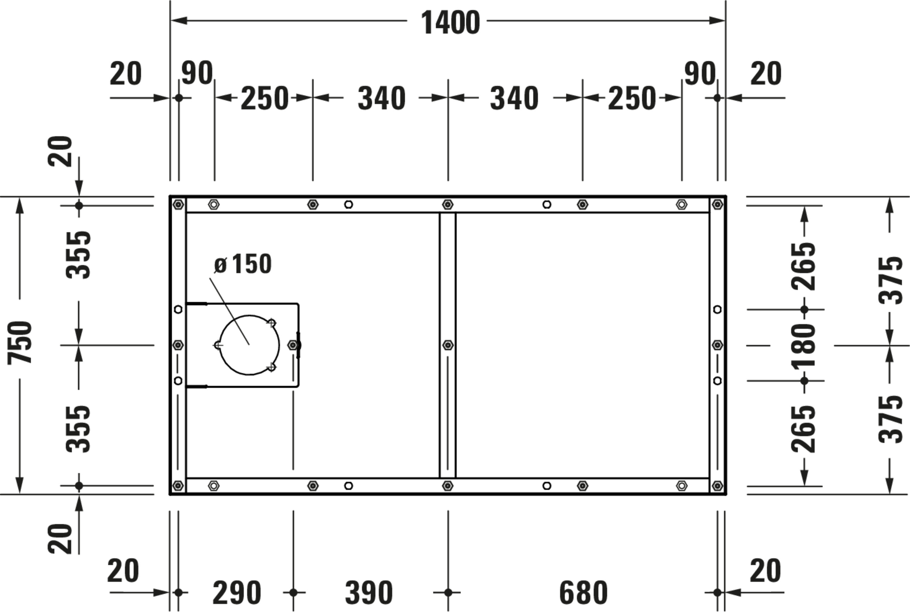 Potenstel, voor douchebak Tempano 1400x750mm Duravit