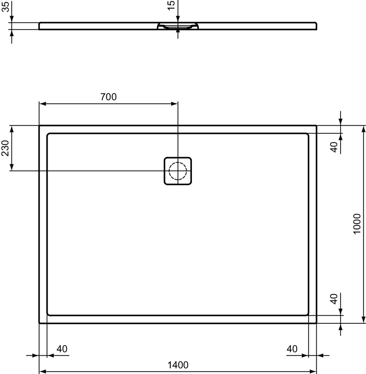 Douchebak rechthoek 1400x1000x35mm Silk White Ultra Flat Evo Ideal Standard
