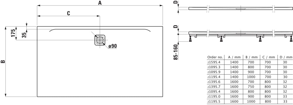 Douchevloer 1400x1000x31mm beige matt H2119541860001 Laufen
