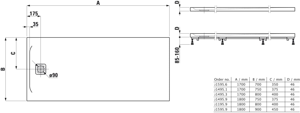 Douchevloer 1700x750x46mm beige matt H2149511860001 Laufen