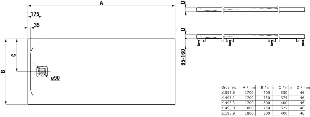 Douchevloer 1700x700x46mm beige matt H2159561860001 Laufen
