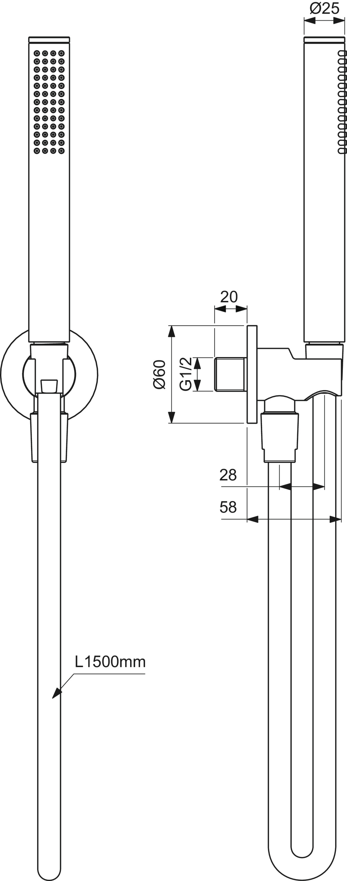 - Diameter douchekop: 25 mm