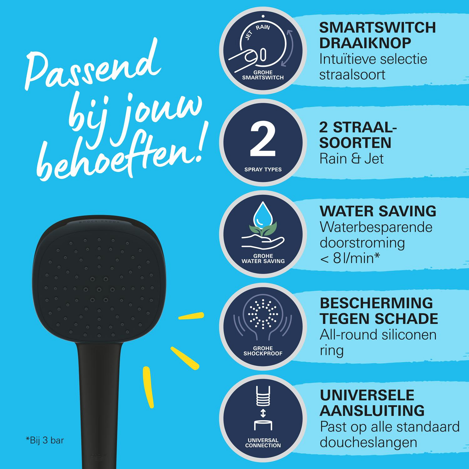 Vitalio Comfort 110 handdouche 2 straalsoorten matte black (mat zwart) Grohe