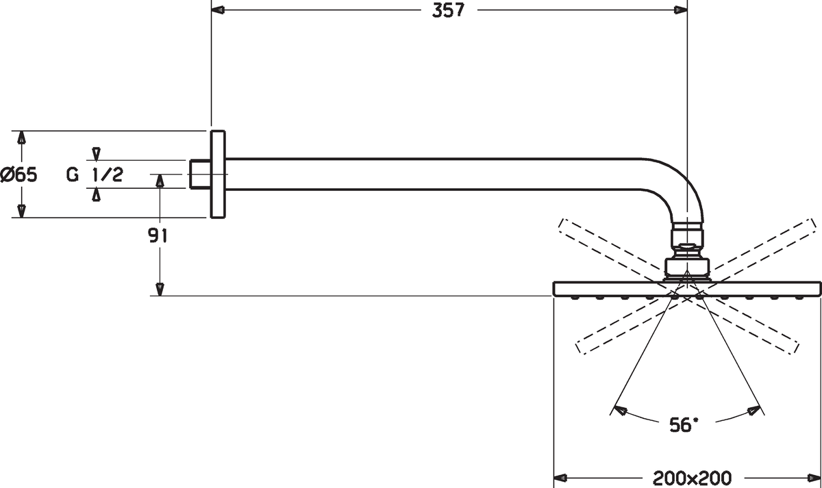Hoofddouche vast +douchearm sprong 350mm 200x200mm HANSAVIVA HANSA