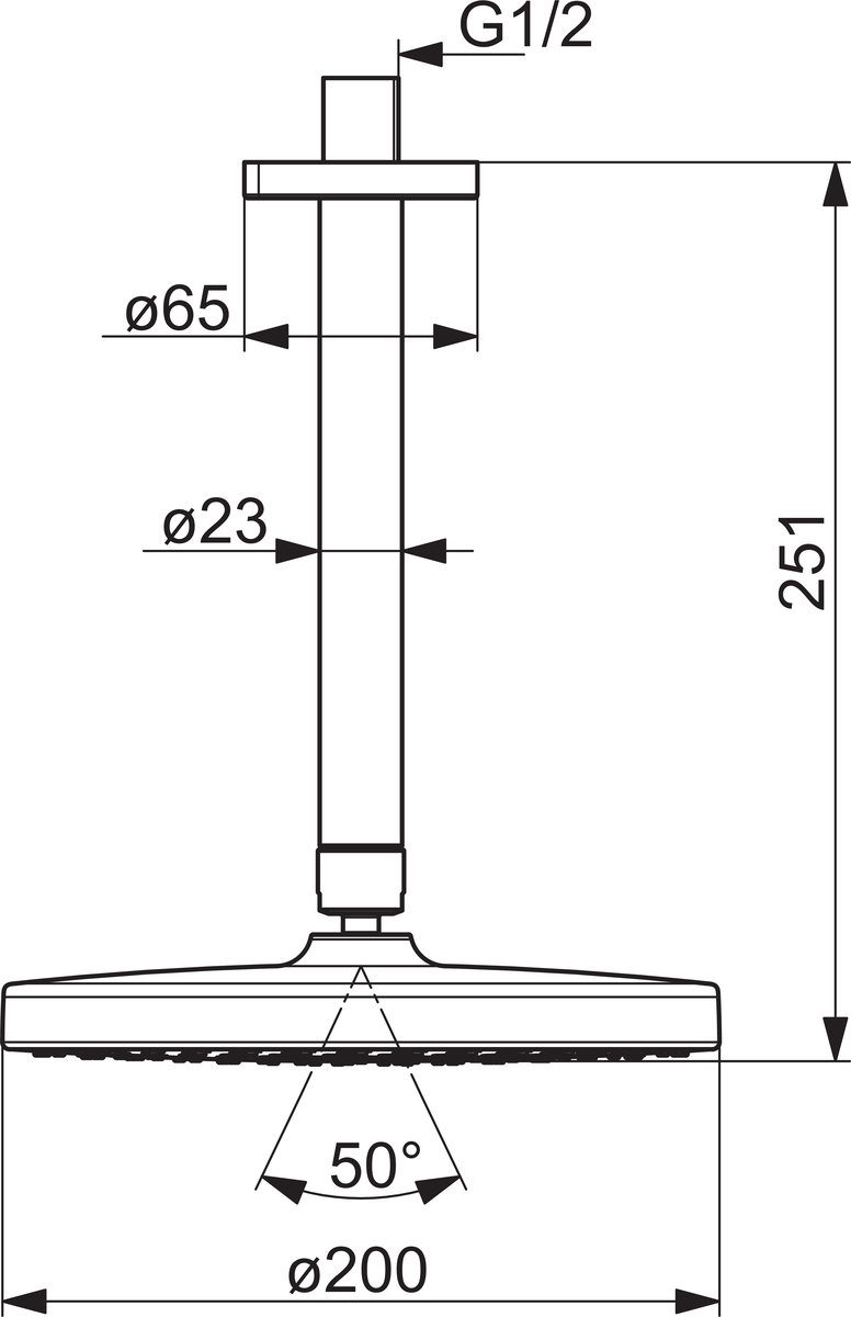 Regendouche Ø200mm plafondmont 200mm buis HANSABASICJET HANSA