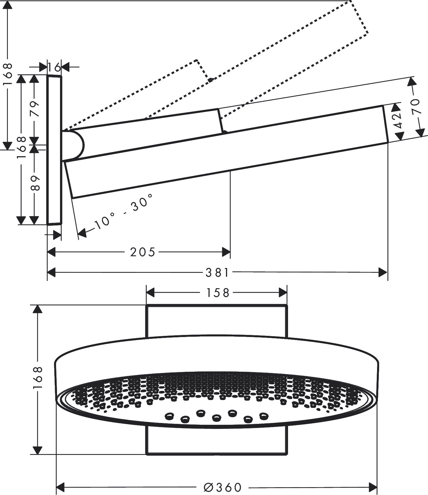 Hoofddouche Rainfinity 360 3 straalsoorten wand polished gold optic hansgrohe
