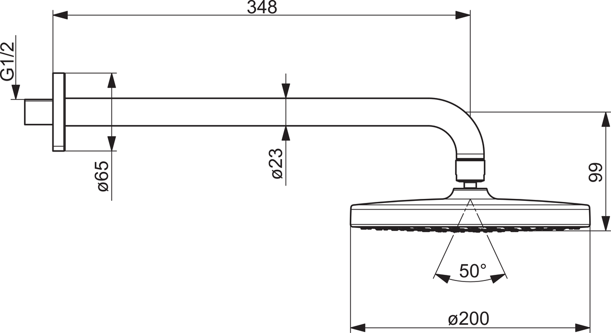 Regendouche Ø200mm wandmontage spr. 348mm mat zwart HANSA