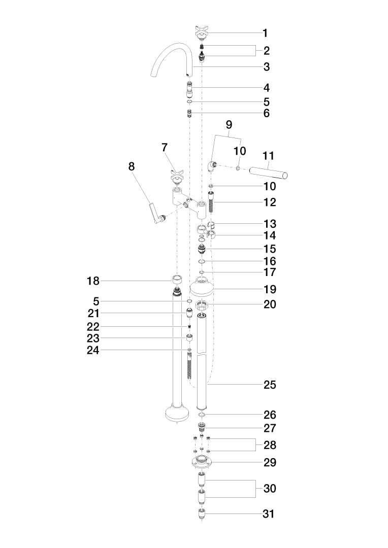 VAIA 2-gats badmngkrn ,vrijst montage douches-DB geb Dornbracht