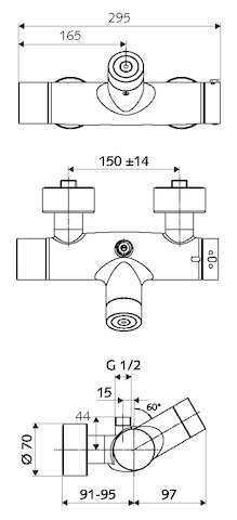 Wandopb. douchekraan VITUS VD-C-T/o CVD Therm. e-Funk b.aan Schell