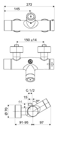 Wandopbouw douchekraan VITUSVD-C-T/oCVDthermostaatb.aansluit. Schell