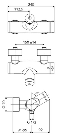 Wandopbouw douchekraan VITUSVD-SC-T/uthermostaatTDo.aansluit. Schell